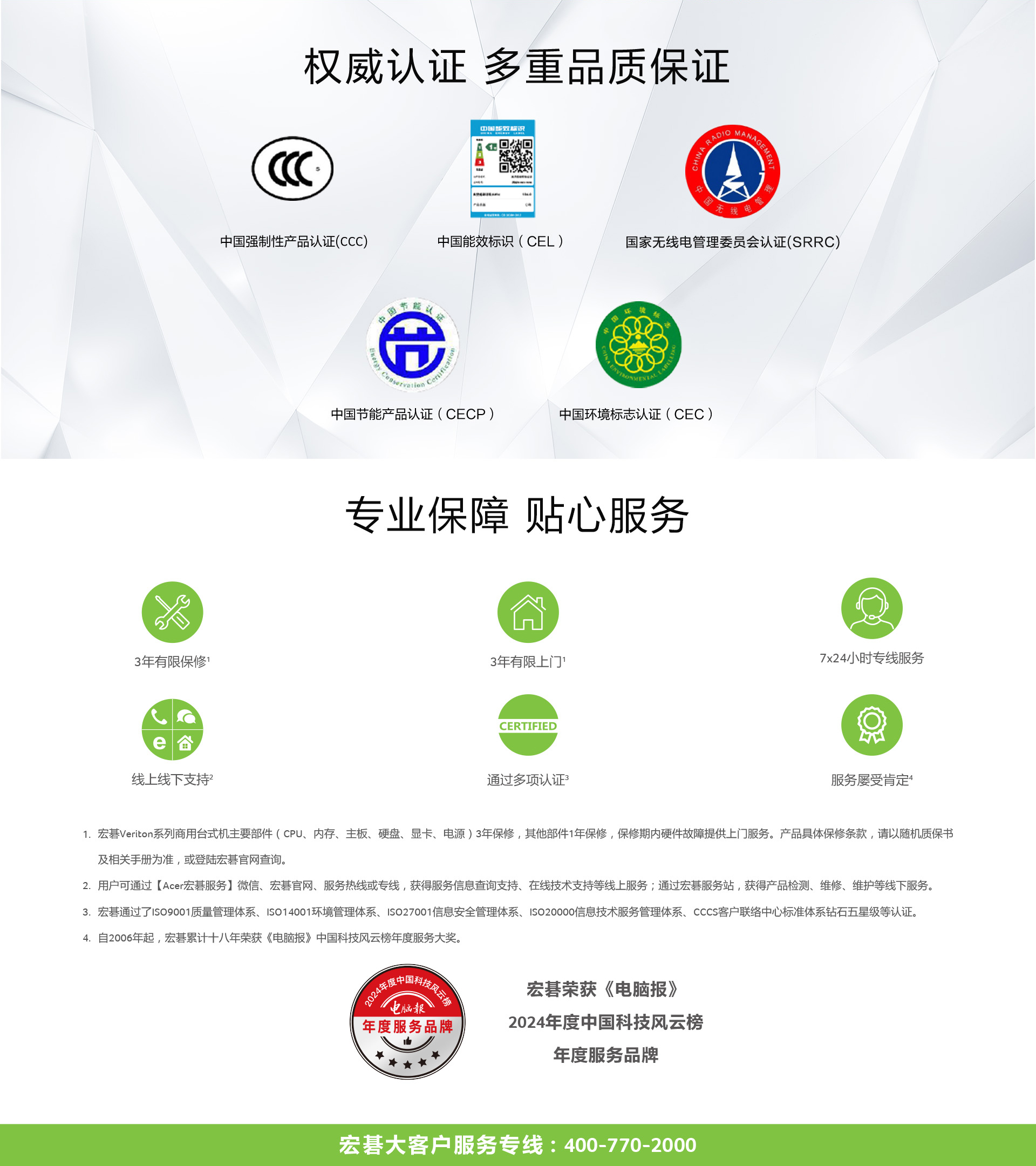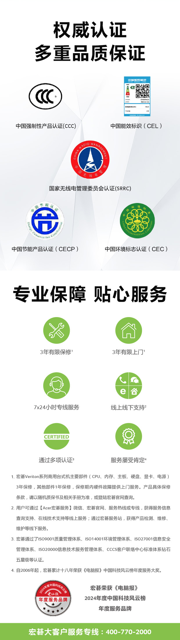 • Acer宏碁大客户服务热线: