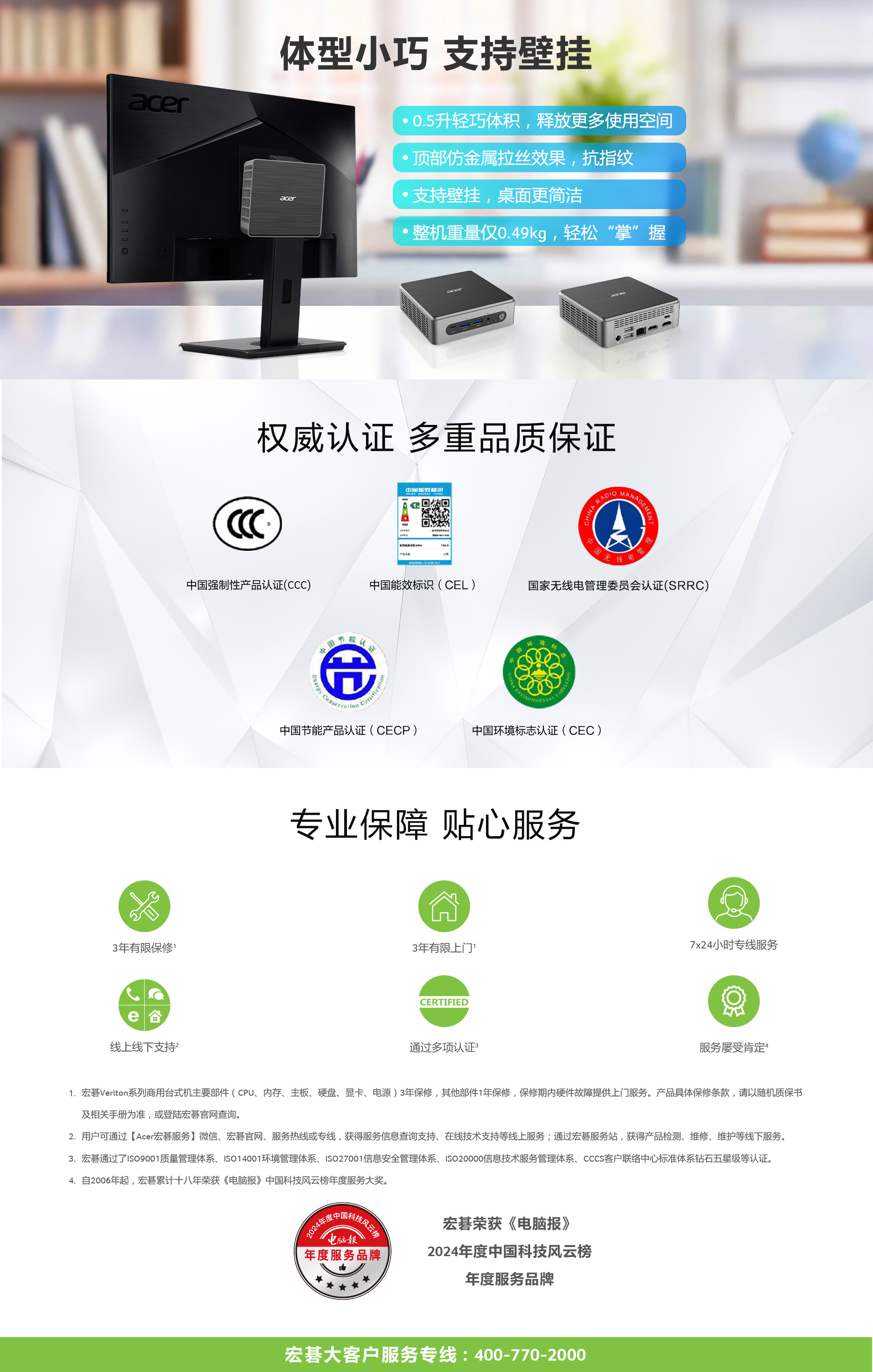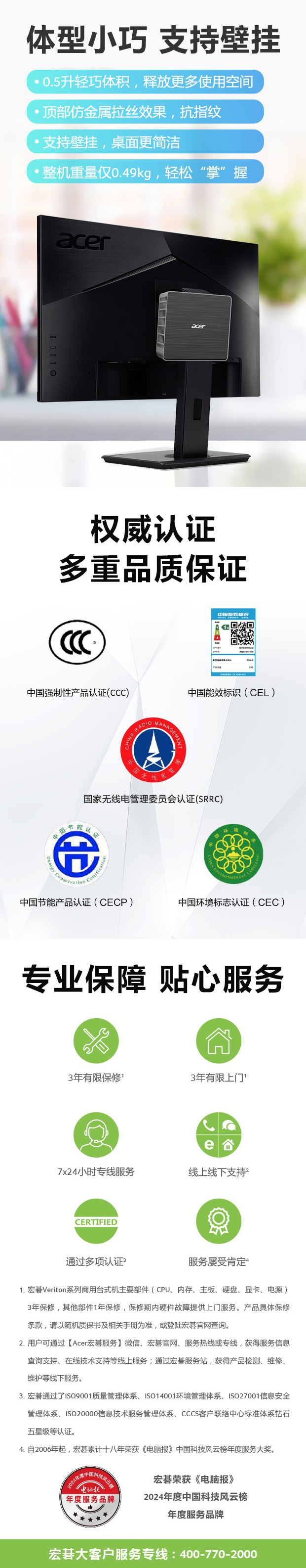 宏碁客户服务热线:400-700-1000